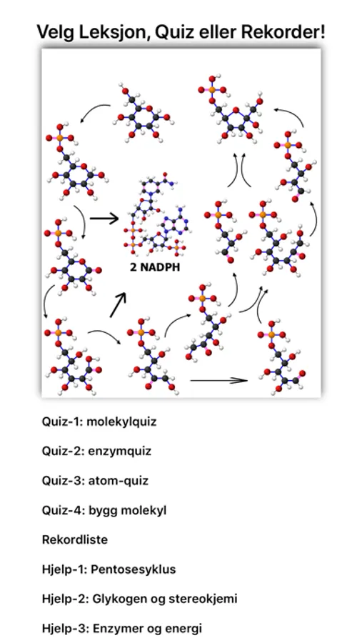 I 3 hjelpe-leksjoner med over 80 tekster og illustrasjoner, lærer man molekylstrukturer, molekylnavn og enzym-navn.
