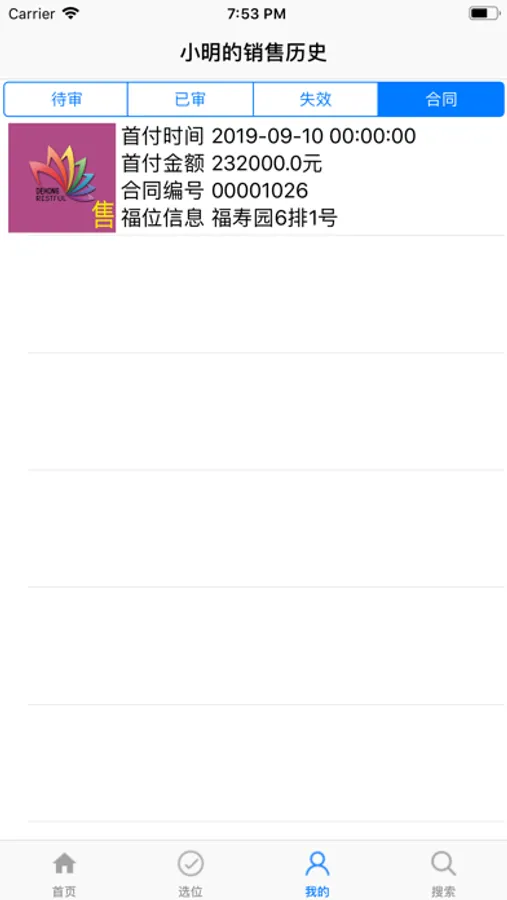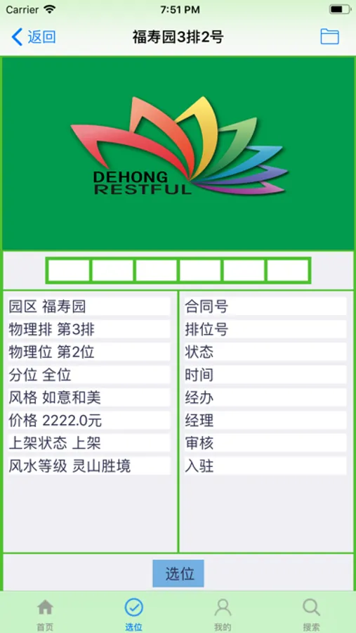 提供德宏万安生命纪念园各园区福位选位与销售状态供app用户即公司销售人员为客户选择福位,提供销售人员查看检索已完成的待审核的选位/已审核的选位/已失效的选位/已完成的销售合同。App 的用户必须先登录系统才能使用App的相关功能,App 用户在App相关的PC 系统中预先进行设置,即App不设置用户。