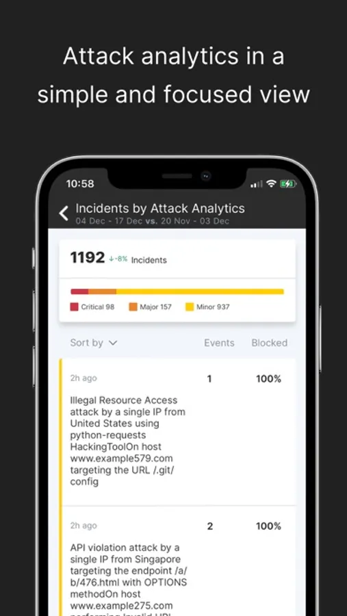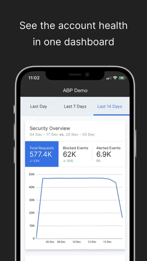 A clear and action-oriented dashboard to view your Imperva Cloud WAF security posture and performance. Stay up-to-date with real-time push notifications on critical events and be able to drill down quickly to what’s most important.Additional functionality includes: