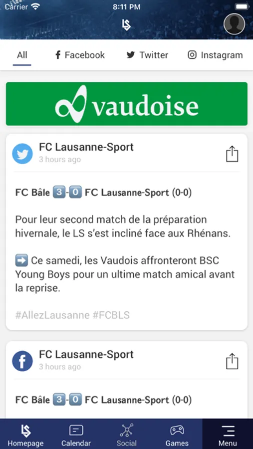 - Les posts sociaux, TOUS accessibles au meme endroit (Facebook, Twitter)