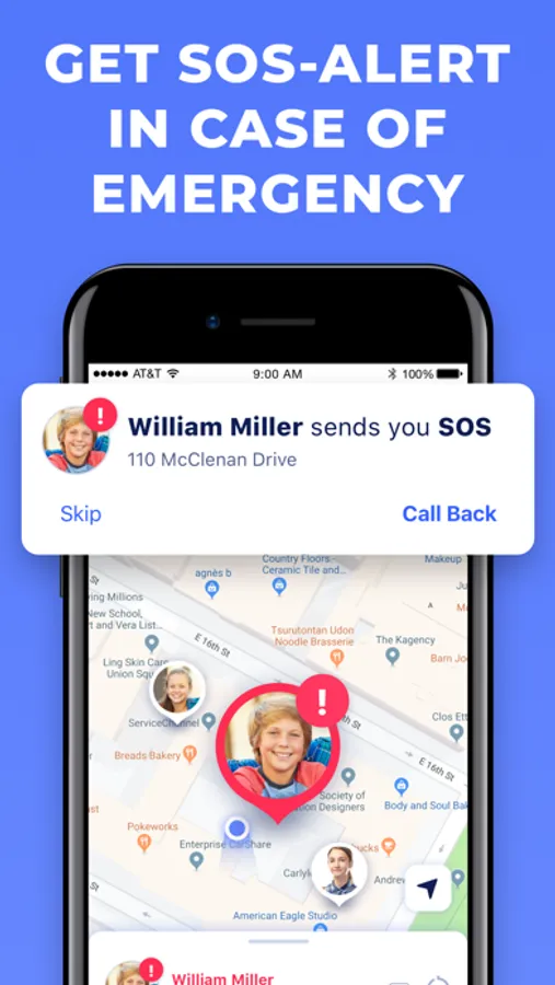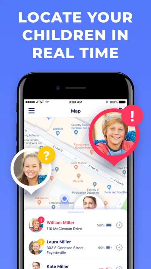 3. Enter the app as a parent, to see your kids' location and get notified.