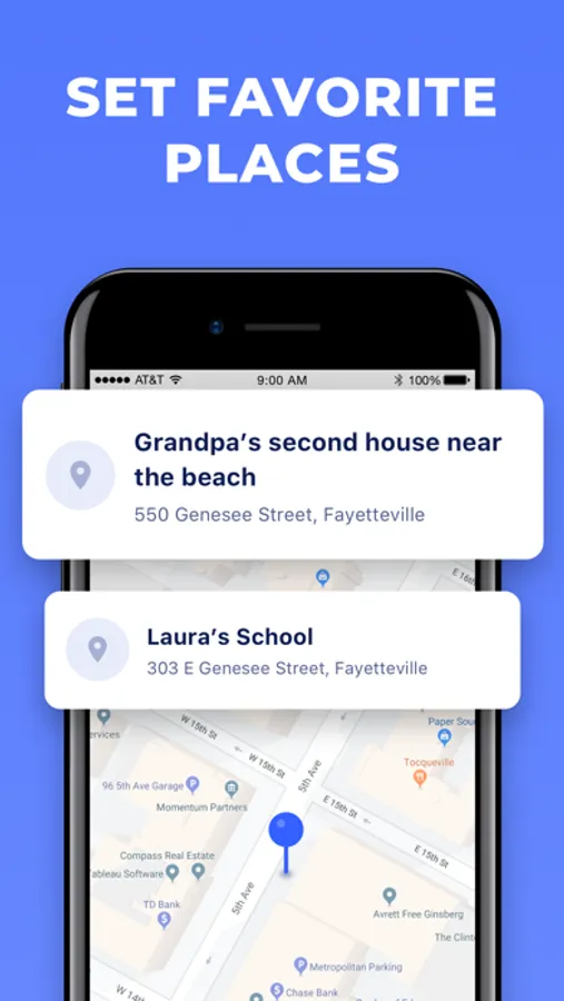 Get automatic notifications when your child arrives or leaves a certain place. With this phone tracker, you can easily create secure zones on the map, like home, school, or any other places that you visit regularly.