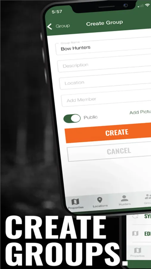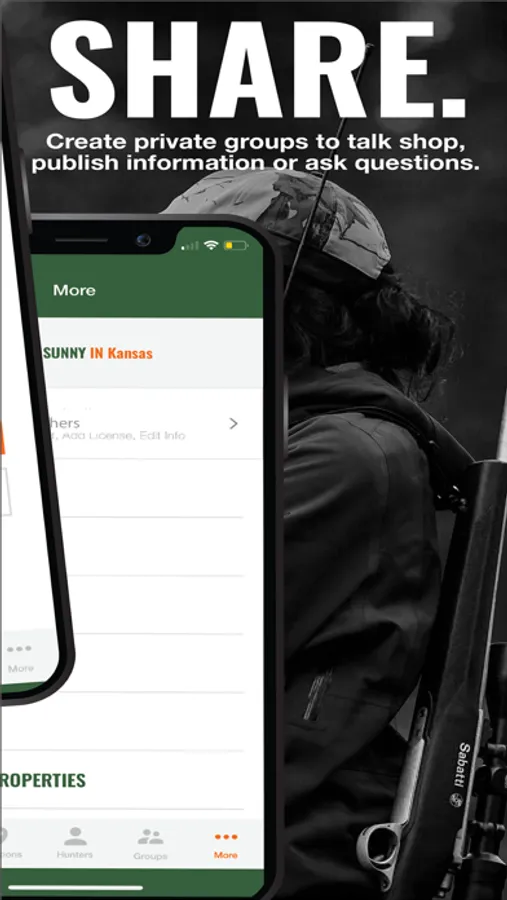 • Create private groups to interact with different hunters for different reasons or seasons