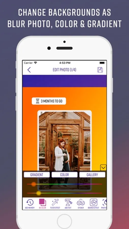 Select a photo from gallery album to create a memory of & then apply stunning gradient & colorful backgrounds on it.