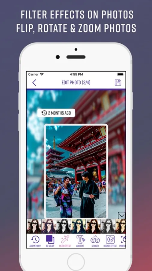 No need to use any other application for making your photo & video memories, just try this which has a lots of photo editing features to create photo & video memories like memories tags, filter effects, custom tagging, beautiful backgrounds, bokeh effects, photo effects, stickers, stylish text & many more.