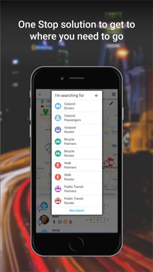 This app will help you quickly and securely find commute partners anywhere in North Carolina! Using your home and work or school addresses, you will be matched to nearby commuters with similar schedules. Your home address will never appear on match lists.