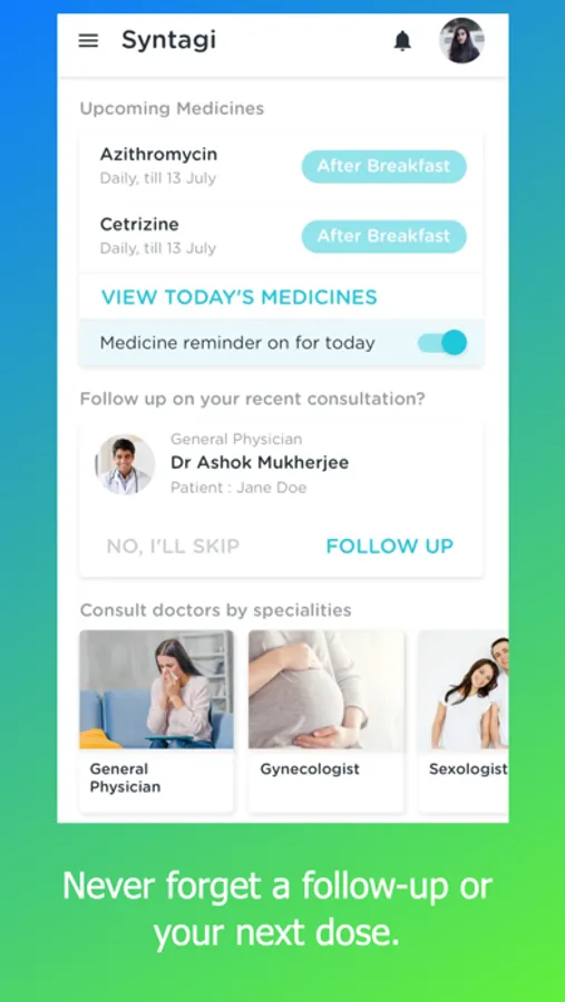 घर बैठे अपने मोबाइल पर सिंतागी ऐप द्वारा विशेषज्ञ चिकित्सक से वीडियो पे बात करें।