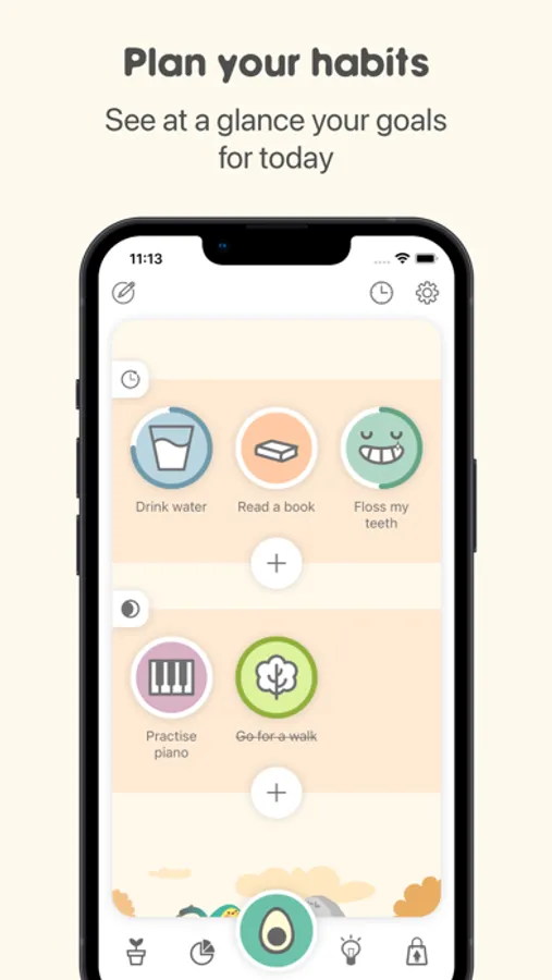 Sticking to new habits or breaking old ones can be overwhelming and stressful. How about making it a fun experience? Yes, you’ve read it right. No more exhausting streaks, self-restrictions and unreachable goals. Avocation is your offline pocket growth assistant that will accompany you on your way to a better version of yourself. Our goal is to show you that it is all about small things that only take a few minutes of your time throughout the day. Sounds simple, doesn’t it? Have a look at what we prepared for you.