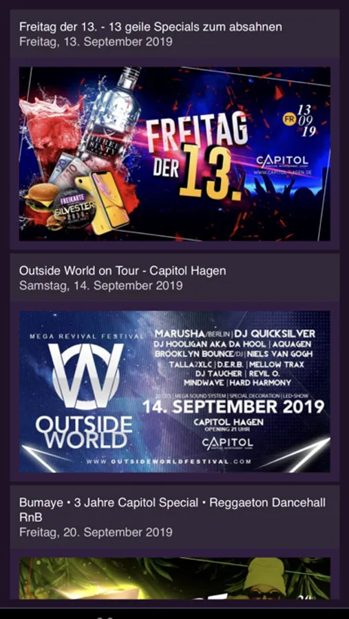 Die kostenlose Capitol Hagen App ist dein mobiler Partyguide und informiert dich immer als erster über die kommenden Nächte im Capitol Hagen. Stöber durch die letzen Partybilder oder lese die neusten News.