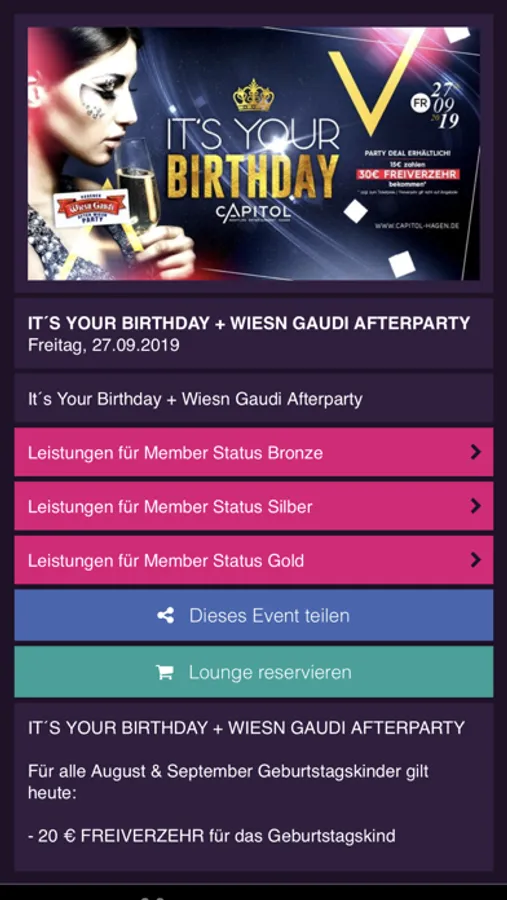 - Erfahre mehr über unsere geplanten Events, Besondere Öffnungstage, Musikrichtungen, DJs, Besondere Servcies, buchbare und freie Lounges und Tickets