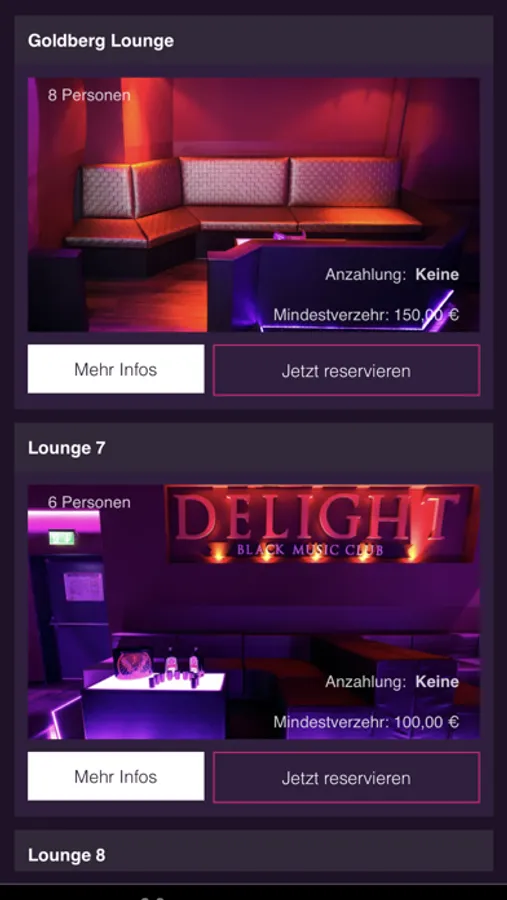 - Reserviere und konfiguriere Lounges für kommende Events