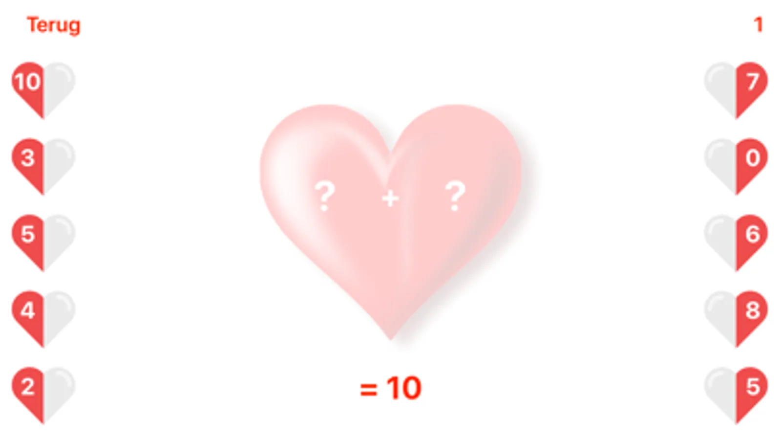 In groep 3 leren de kinderen de splitsingen van 1-10. Met de Verliefde Harten worden splitsingen tot 10 en aanvullingen tot 10 geoefend.