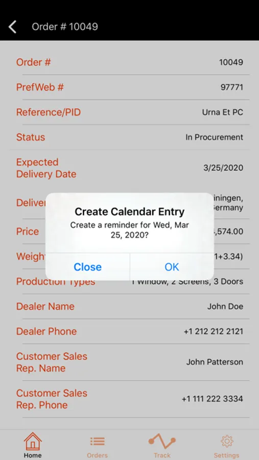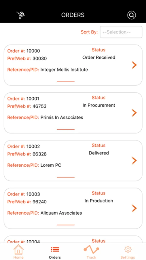 - Track orders from your manufacturer and filter by current order status, PrefWeb number and Reference ID