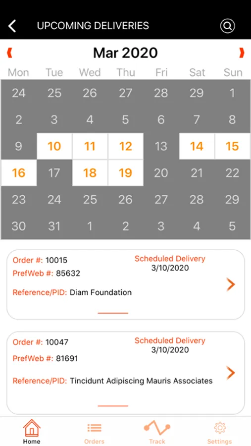 - View all upcoming deliveries in a convenient Calendar view