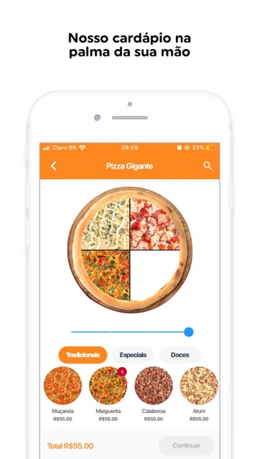 Você pode montar sua pizza de forma simples: arraste os sabores, saiba todos os ingredientes de cada sabor e tenha uma pré-visualização de como sua pizza vai ficar. Nunca foi tão fácil fazer um pedido de pizza!