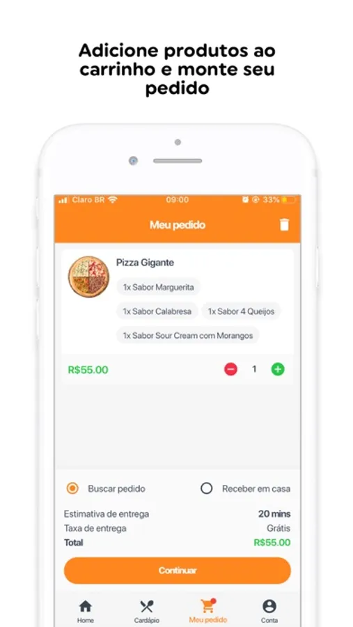 No app, você encontra de forma rápida o cardápio completo e ainda pode utilizar a ferramenta de busca para localizar diretamente os produtos que você deseja.