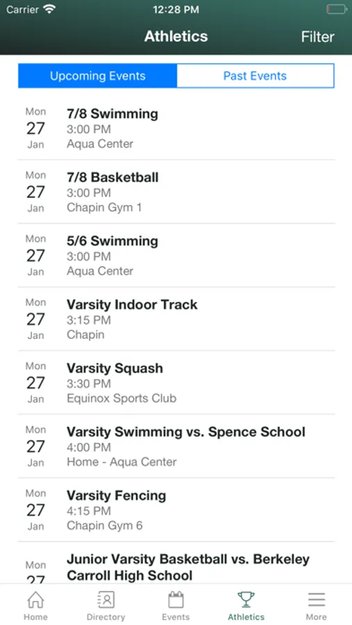 • Review athletic event details, including opponents, game results, recap commentaries, and more
