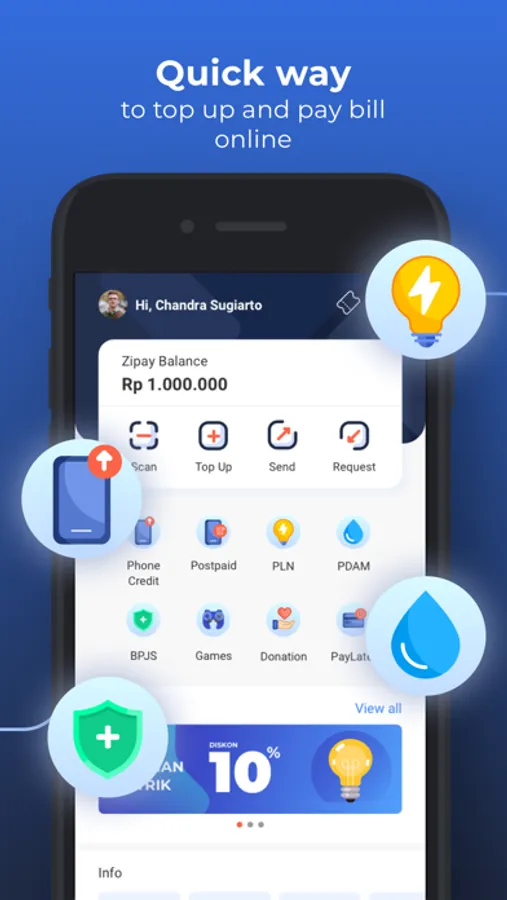 ZIPAY is Indonesia's digital e-money that can be counted on anytime, anywhere. With our mighty all-in-one app, you can safely make cashless payments for everyday needs such as offline purchases, mobile top ups, and bill payments.