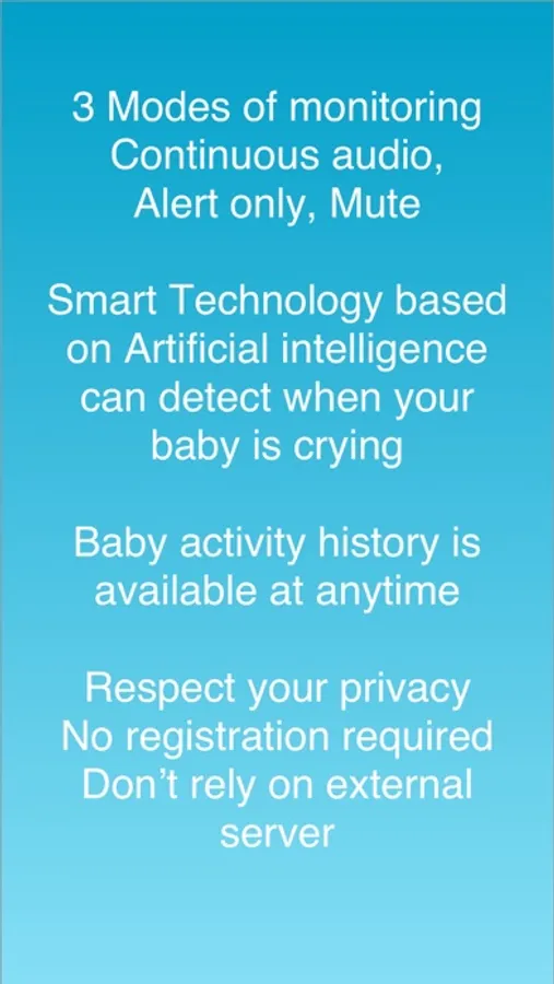 - Alert only mode: Smart Babyphone will only play audio, when there is noise in your baby's room