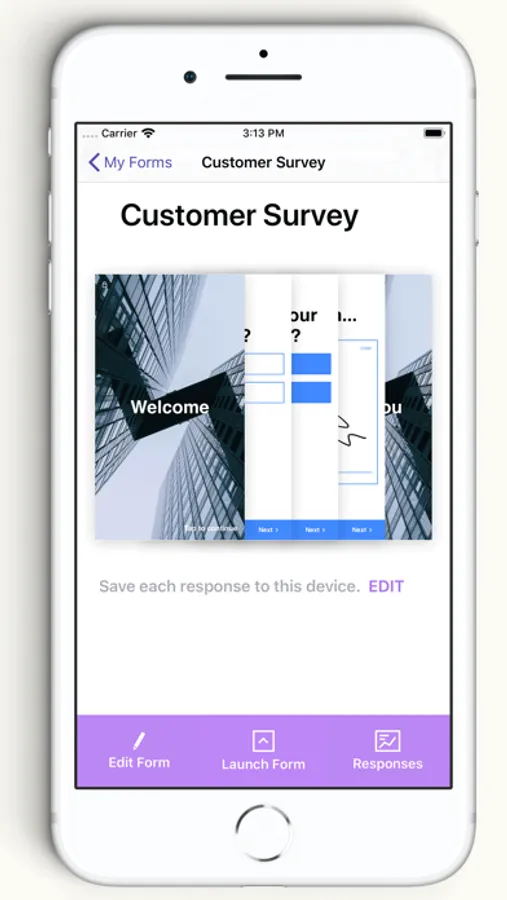 View responses on your device or export your data in CSV format to use in other apps and online services. With an internet connection, configure your form to email you when a new response is submitted. Form Builder Pro also integrates with Contactually allowing you to have form results sent directly to your CRM.