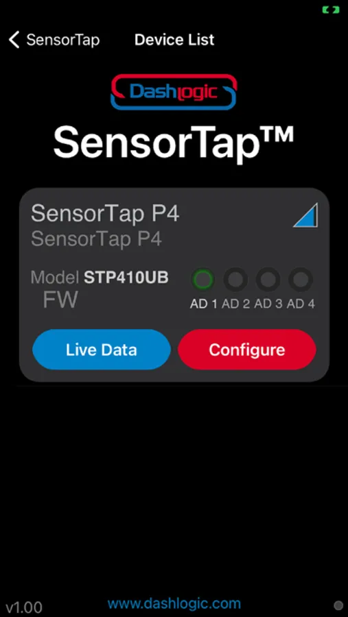 REQUIRES SensorTap P4 hardware! Learn more here: http://www.dashlogic.com/products/sensortap/p4