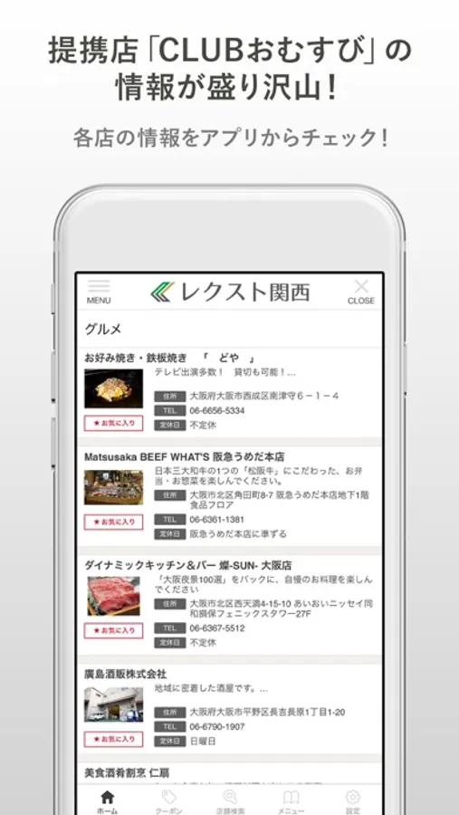 スマートフォンの位置情報を利用して、最寄りの店舗検索やジャンル別検索も可能です。