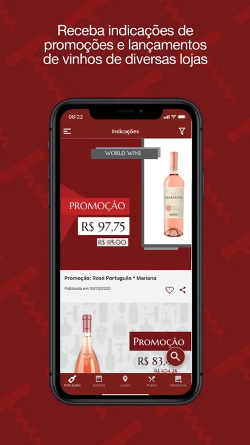 O Intelivino é uma plataforma onde você encontra tudo sobre vinhos em um só local. O aplicativo é divido em alguns pilares importantes: Indicações, Agenda, Locais, Pratos e Momentos. Na sessão de “Indicações”, são divulgadas diariamente promoções e lançamentos de rótulos de diversas lojas do país. Você pode configurar de acordo com o seu perfil de experiências preferidas, estilo de vinhos e até mesmo faixa de preço, para só receber as que forem do seu interesse. Tudo totalmente personalizado.