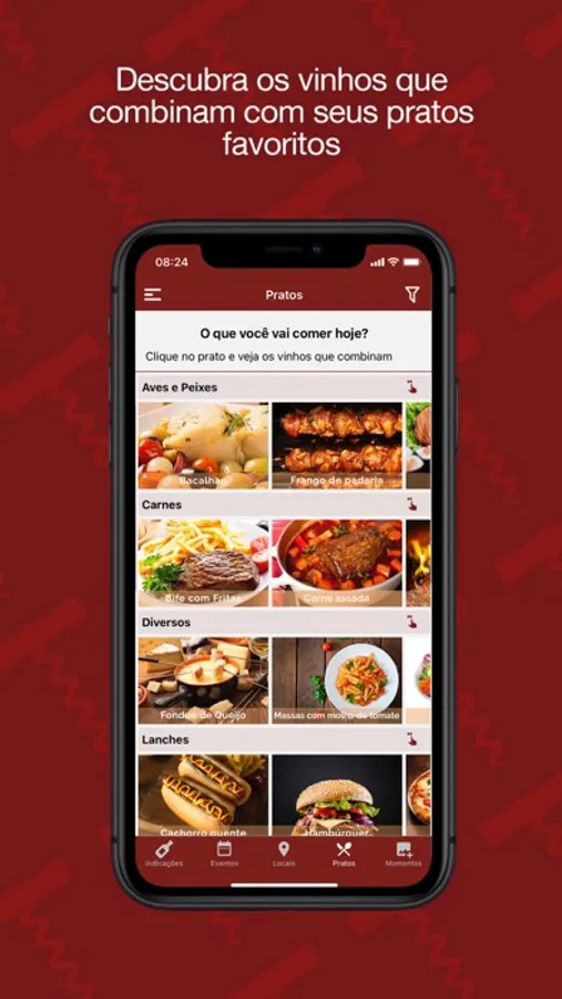 Quer saber qual vinho pode comprar para combinar com alguma comida em específico? É só acessar a área de “Pratos” e ver as indicações que selecionamos.