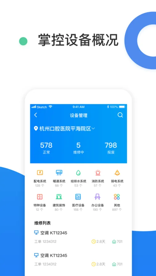 通策后勤系统是一款涵盖报修、维保等多种后勤相关功能的APP,旨在将后勤相关流程通过信息化系统实现,为用户提供更好的使用体验。
