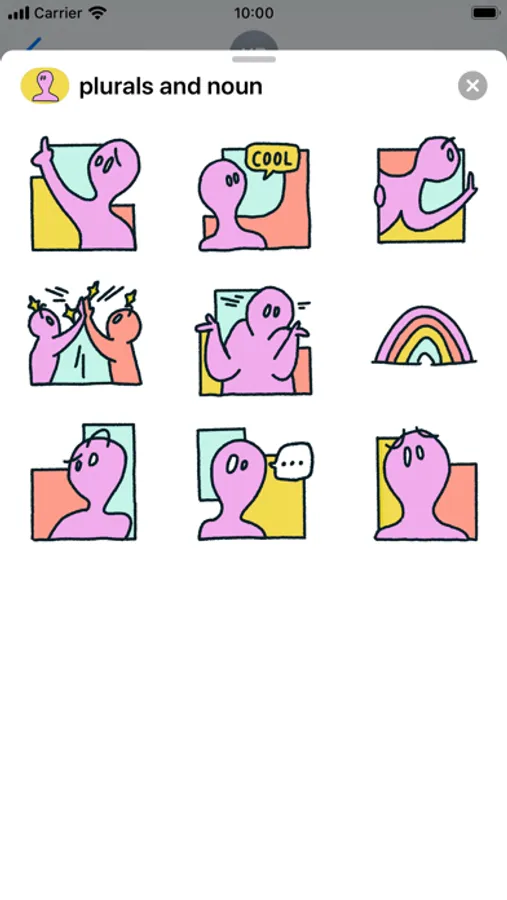 Plurals and Noun is a comic about queer and weird things that happen. You can follow us on Instagram at @pluralsandnoun. This sticker pack is a collaboration between artist Lisa Sy and software developer Jesse Squires.