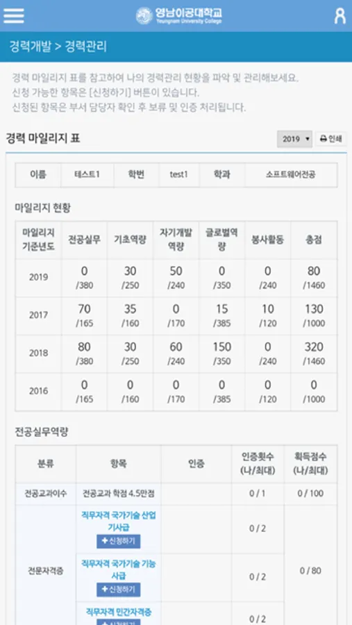 영남이공대학교 ICPP 통합 학생역량개발시스템 모바일 APP