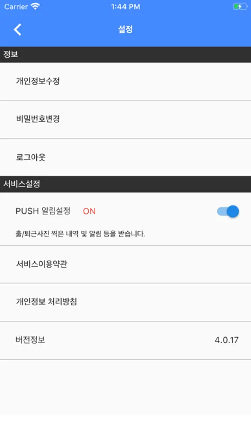 (주)아이오시스템의 블랙아이(기기)를 이용하는 건설업체에 근무하는 근로자를 위한 출퇴근관리 앱