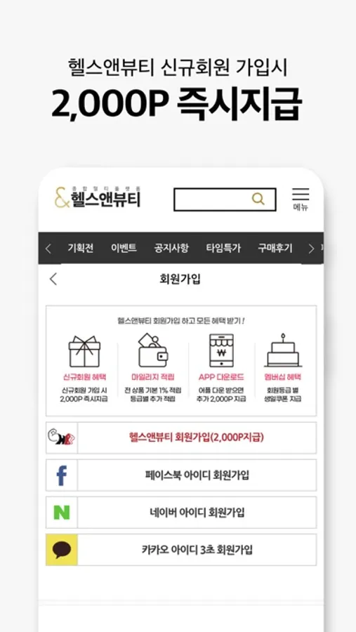 ● 신규 회원 가입 시 2,000원 즉시지급!