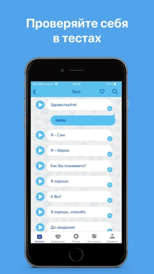 и состоит из нескольких частей, отличающихся по степени интенсивности работы с фразами. В каждой из частей у вас есть возможность самоконтроля. Сказав фразу самостоятельно, вы всегда сможете свериться с аудио-вариантом или прочитать субтитры.