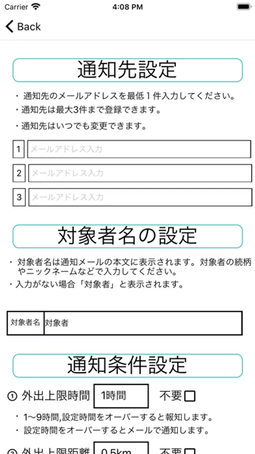 テクノスジャパン製品であるお散歩コールの設定が行えます。
