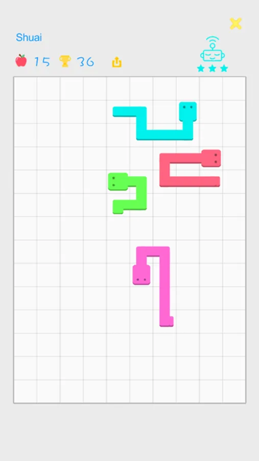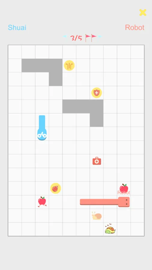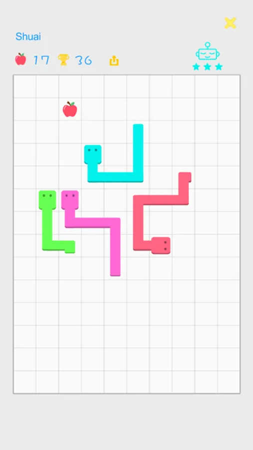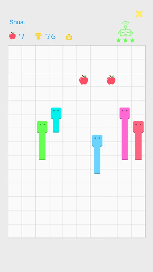 Robot mode: Place apples (up to three) on the ground, and then defeat the robot snake through strategic placement.