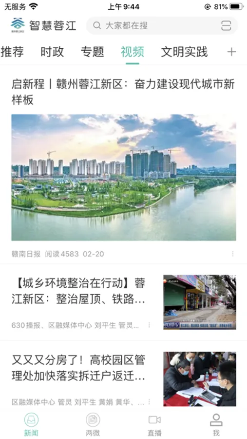 “智慧蓉江”APP是赣州蓉江新区融媒体平台,汇集中央、省、市、区主流媒体最新资讯,并链接“赣服通”,涵盖政务服务、网上办事、生活服务等与群众生活息息相关的服务功能。