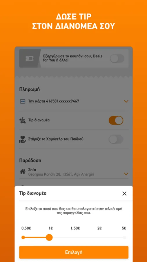- Να επιλέξεις ανέπαφη συναλλαγή- Να αφήσεις online το tip σου στον διανομέα