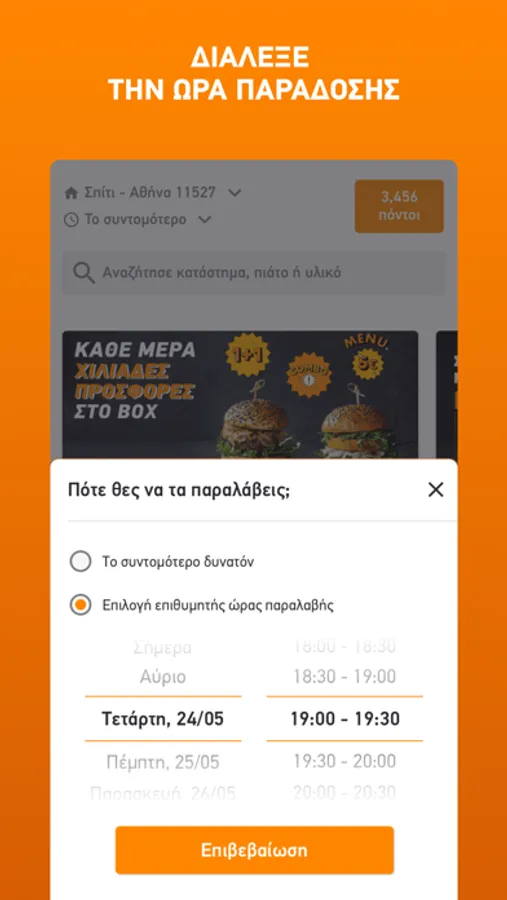 - Να προγραμματίσεις την ώρα και την τοποθεσία παράδοσης κάθε παραγγελίας