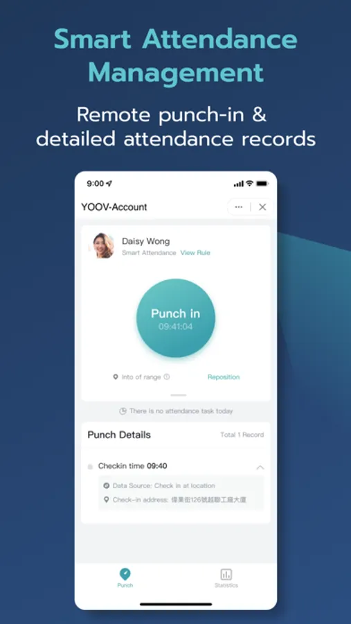 • To improve the efficiency, you can use any punch-in methods that are best suited for you such as GPS or WiFi.