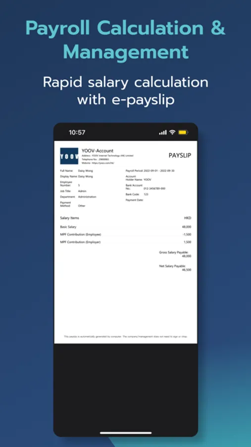 • Only takes a moment to calculate basic salary, MPF, commissions, allowances etc upon setting your preference on rules.