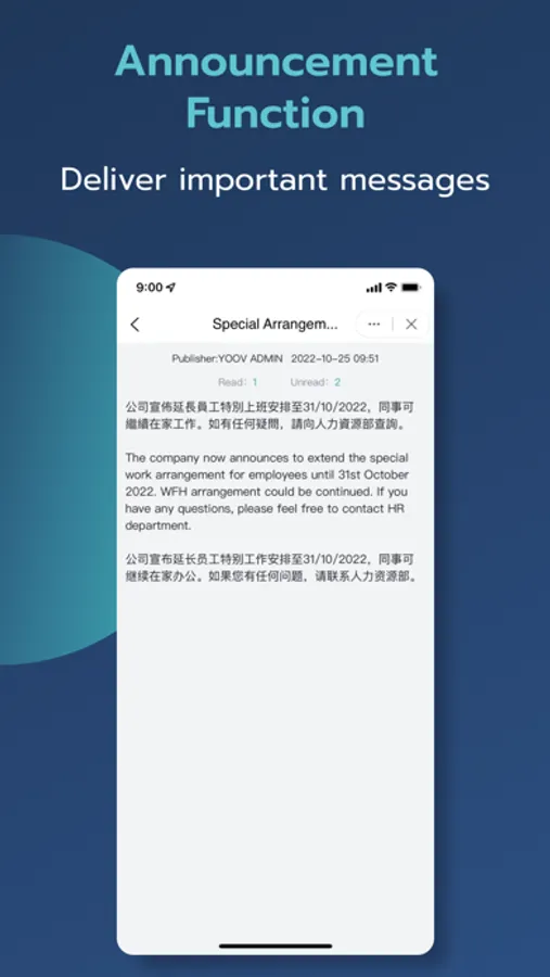You can have a 14-day free trial of our mobile app. After downloading YOOV WORK, please contact our customer service team via WhatsApp or phone, enjoy an extra 3 months Free trial!