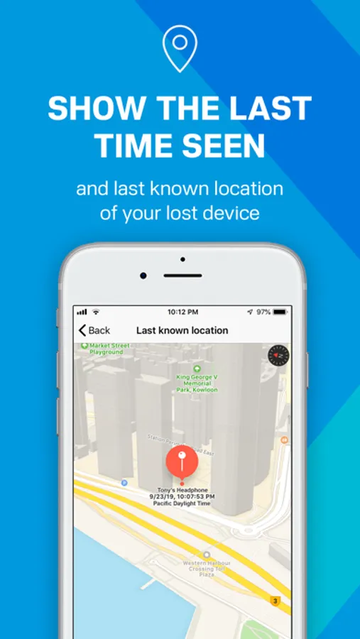 • Show the last seen (detected) time and last known location of your lost device on a map.