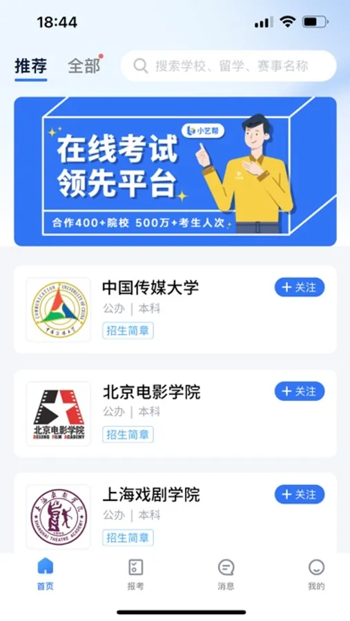 【艺考报名】高校发布招生信息,考生选择专业报名及缴费。