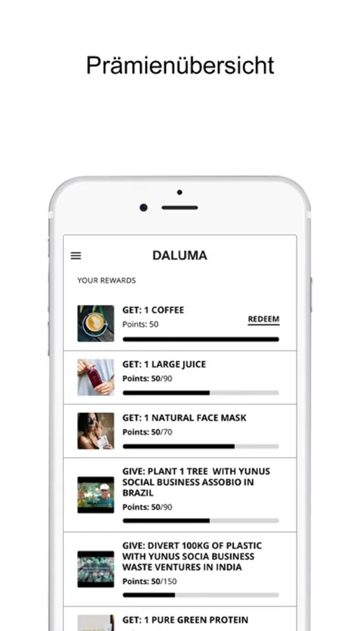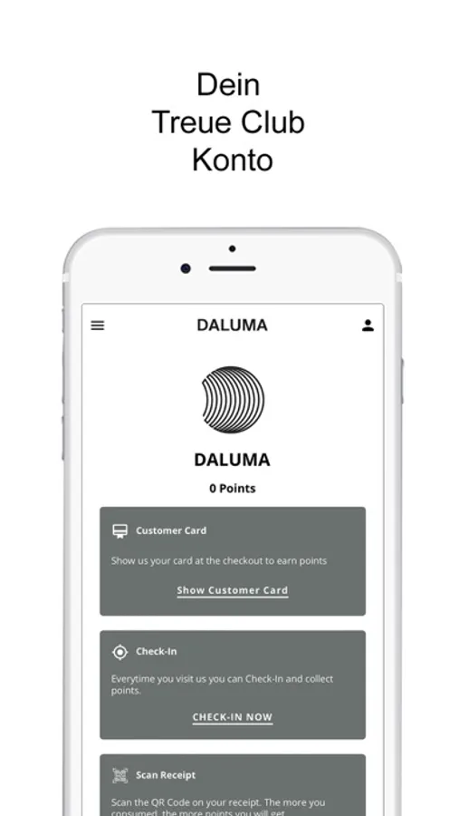 Die DALUMA-App ist dein digitales Treueprogramm! Du kannst ganz einfach durch unterschiedliche Aktivitäten Punkte sammeln und diese gegen tolle Prämien einlösen.