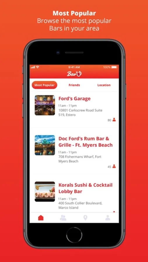 Bar U lets you find Bars near u, look for friends that are attending the bars and make new friends.