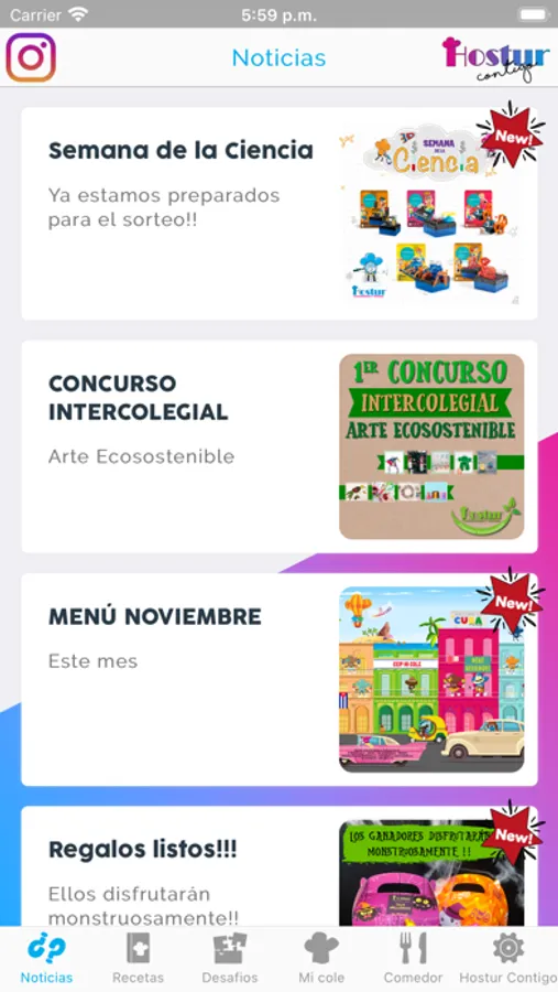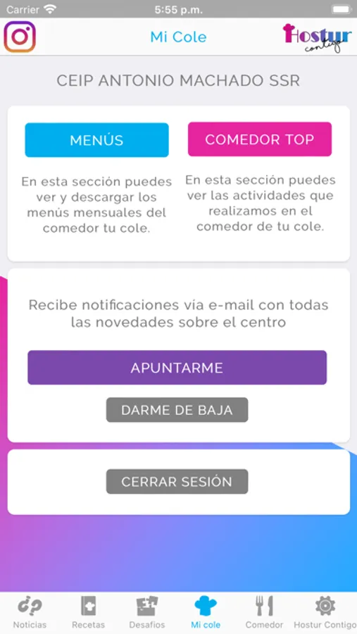 Con nuestra App ponemos a tu disposición desafíos para los más peques, información sobre las actividades del centro y el menú diario del comedor para así ayudarte a planificar una dieta más variada fuera del colegio.