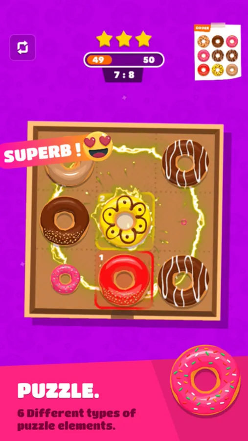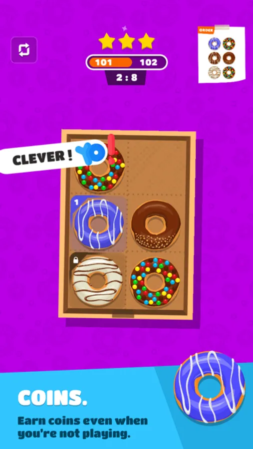 A box of glistening sugary donuts awaits to be packed and shipped, it's your job to ensure the donuts are neatly arranged and kept in order. But some of these donuts mind you, have a mind of their own.