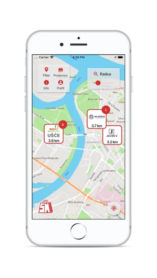 Mapa: Pogledaj koja prodavnica ti je blizu ili samo pretraži pogledom po gradu šta se gde nalazi.