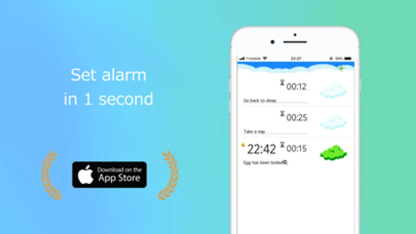 If you save the time in AlarmQuick, you can set the timer with one tap (1 second) at any time.